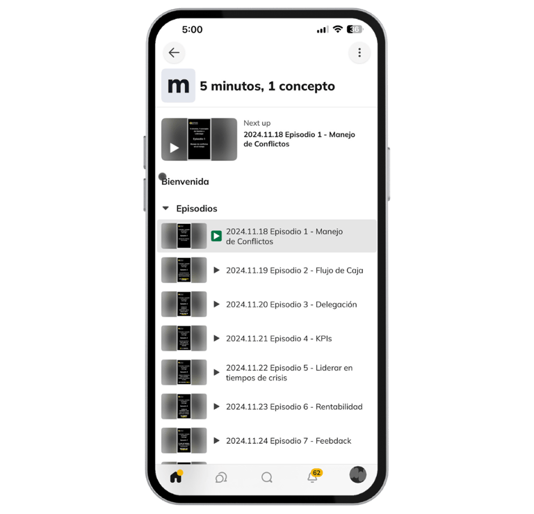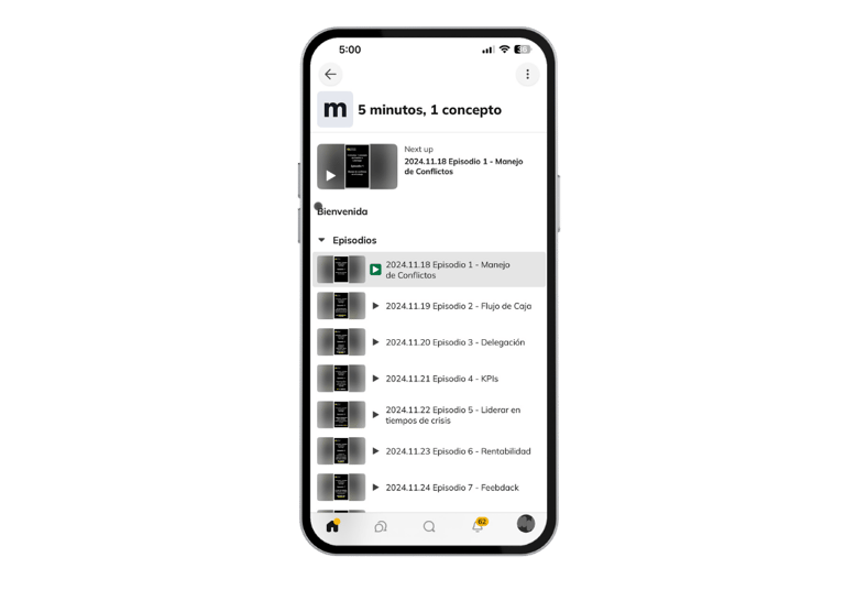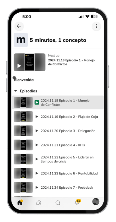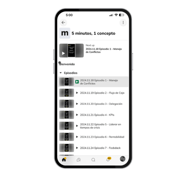 Audios de 5 minutos diarios, para aprender nuevos conceptos y mantener una mentalidad correcta.